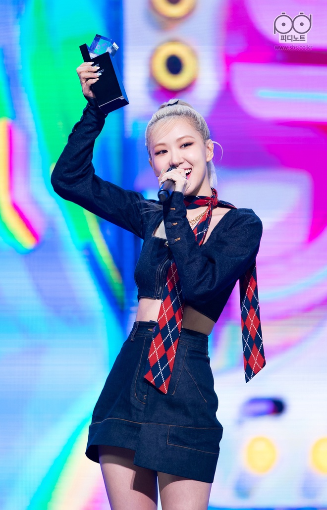 Lần trở lại với bài hát Dumb Dumb đã thành công vượt ngoài mong đợi của Somi và ekip, vậy nên The Black Label (công ty chủ quản của Somi) quyết định kéo dài thời gian quảng bá trên các sân khấu âm nhạc. Trong màn trình diễn mới đây, Somi diện set đồ gồm cardigan phối cổ sen điệu đà + quần short họa tiết ô trám đáng yêu. Khi còn đang ngờ ngợ sao outfit này quen thế thì dân tình chợt nhớ ra trước đó khi quảng bá cho bài hát solo đầu tay On The Ground, Rosé cũng từng diện set đồ giống hệt.