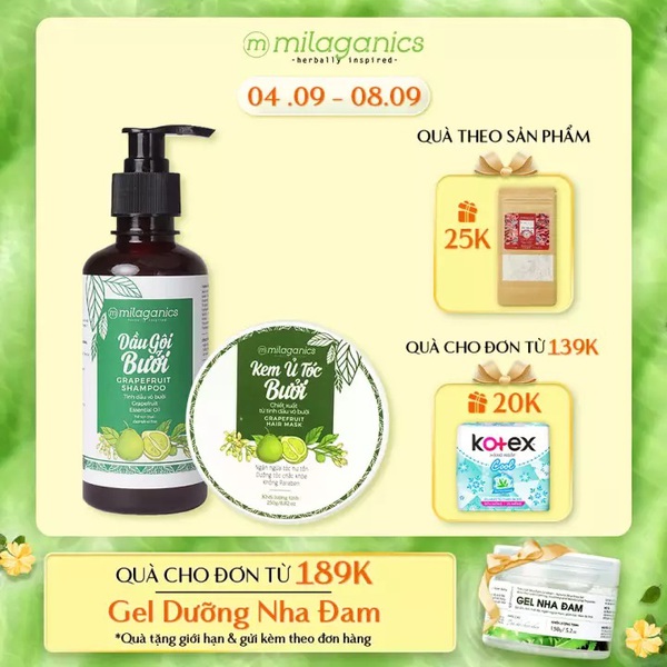Bộ đôi phục hồi và ngăn rụng tóc chiết xuất tinh dầu bưởi MILAGANICS chứa tinh dầu bưởi, củ cải đường, chiết xuất cây Phỉ, chiết xuất Nha Đam tươi,...và bổ sung thêm các hoạt chất dưỡng tóc chuyên sâu, tác động nhanh chóng và triệt để, giúp phục hồi tóc hư tổn từ sâu bên trong.