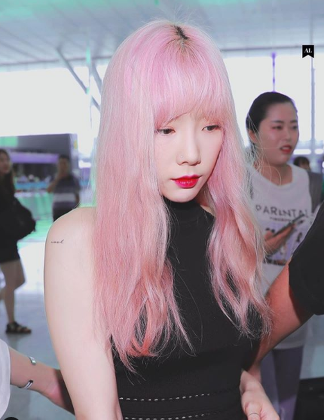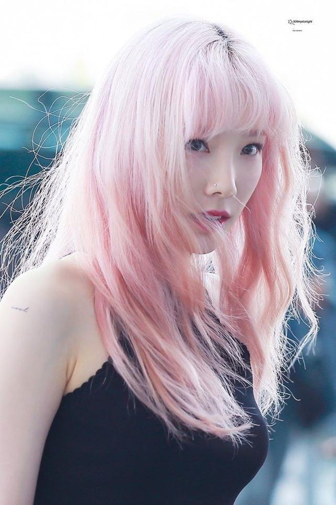 Nàng idol gen 2 Taeyeon cũng tranh thủ so kè một chút với đàn em khi nhuộm tóc hồng. Nhiều người nhận xét trông cô hệt như búp bê sống vậy. Cũng nói thêm là dạo gần đây idol Hàn rất chuộng màu hồng, nhà tạo mẫu tóc Park Naeju đã chia sẻ các ngôi sao Kpop thường xuyên yêu cầu nhuộm màu này