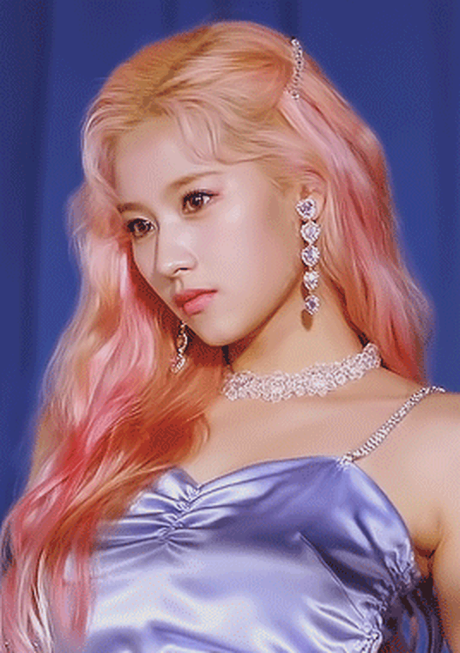 Vốn là một trong những nhan sắc nổi bật nhất TWICE, nhưng Sana càng thêm tỏa sáng khi nhuộm tóc hồng. Màu tóc này giúp cô trông hệt như những nhân vật anime, dù duỗi thẳng hay uốn xoăn, nhuộm hồng cam pha highlight hồng pastel thì visual của cô nàng vẫn cứ là nức nở lắm luôn