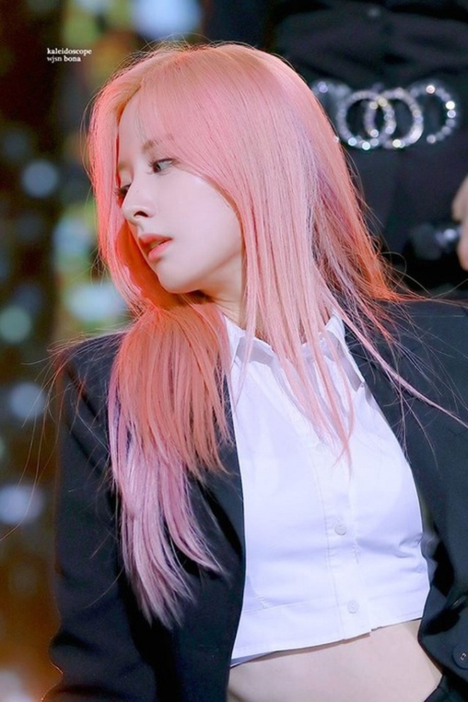 Dù không quá nổi tiếng nhưng nhan sắc của Bona (WJSN) vẫn có sức hút và nhiều lần gây bão trên các diễn đàn ở Hàn Quốc, cô cũng được bình chọn là một trong những idol hợp màu tóc hồng nhất