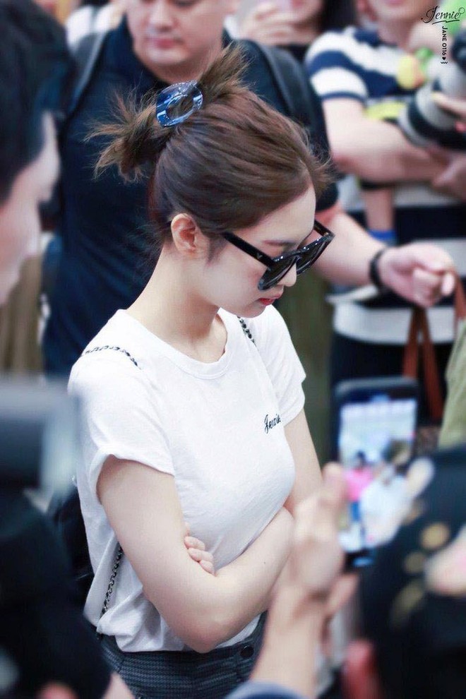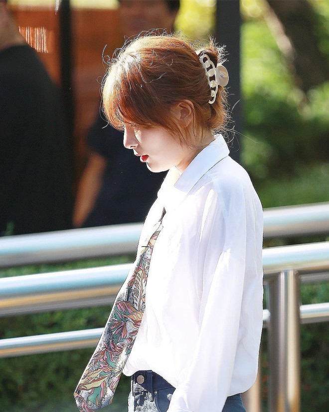 Kiểu tóc búi thấp tưởng như đơn giản, vậy mà lại được các idol Kpop vô cùng ưu ái, không những áp dụng để chụp ảnh selfie mà còn diện đi sân bay, đi chơi... Việc búi gọn tóc phía sau gáy không những giúp vẻ ngoài năng động, nữ tính hơn, mà còn có khả năng che đi phần tóc khô xơ, bông xù đáng kể. Để gương mặt thêm phần thanh thoát, bạn nên búi lỏng tay, để dư lại tóc mái 2 bên, xõa tự nhiên trước mặt.
