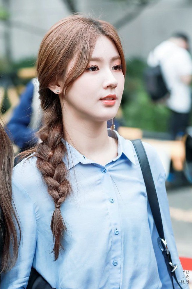 Nếu các nàng lo sợ rằng tóc tết 2 bên có hơi "cưa sừng làm nghé" thì hãy cứ thử kiểu tóc tết lệch 1 bên xem sao. Bên cạnh "công chúa tóc vàng" Rosé, có cả loạt các idol khác cũng rất ưa thích tóc tết, như: Miyeon ((G)I-DLE), Naeun (Apink), Aisha (Everglow)... Kiểu tóc này dù là đi làm, đi học hay đi chơi đều xinh miễn bàn.