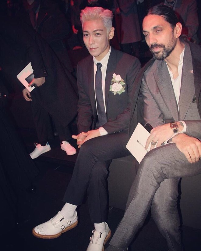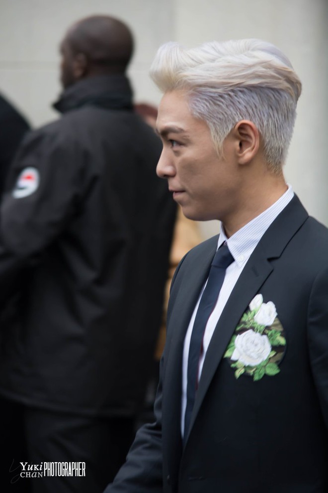Mang mái tóc bạch kim quen thuộc tới kinh đô thời trang, T.O.P trở thành điểm sáng chói của sự kiện này