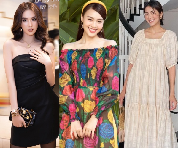 Nhiều mỹ nhân Việt khiến người hâm mộ không thể rời mắt khi diện những thiết kế hở cổ khoe trọn xương quai xanh. (Ảnh: FB Ngọc Trinh + FB Ninh Dương Lan Ngọc + Instagram hatangthanh)