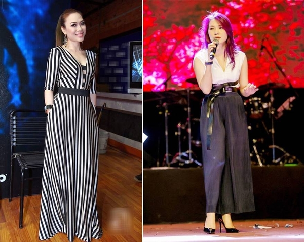 Những bộ cánh có phần dìm dáng nữ ca sĩ khi xuất hiện trên sân khấu (Ảnh T.H FBNV - eva)