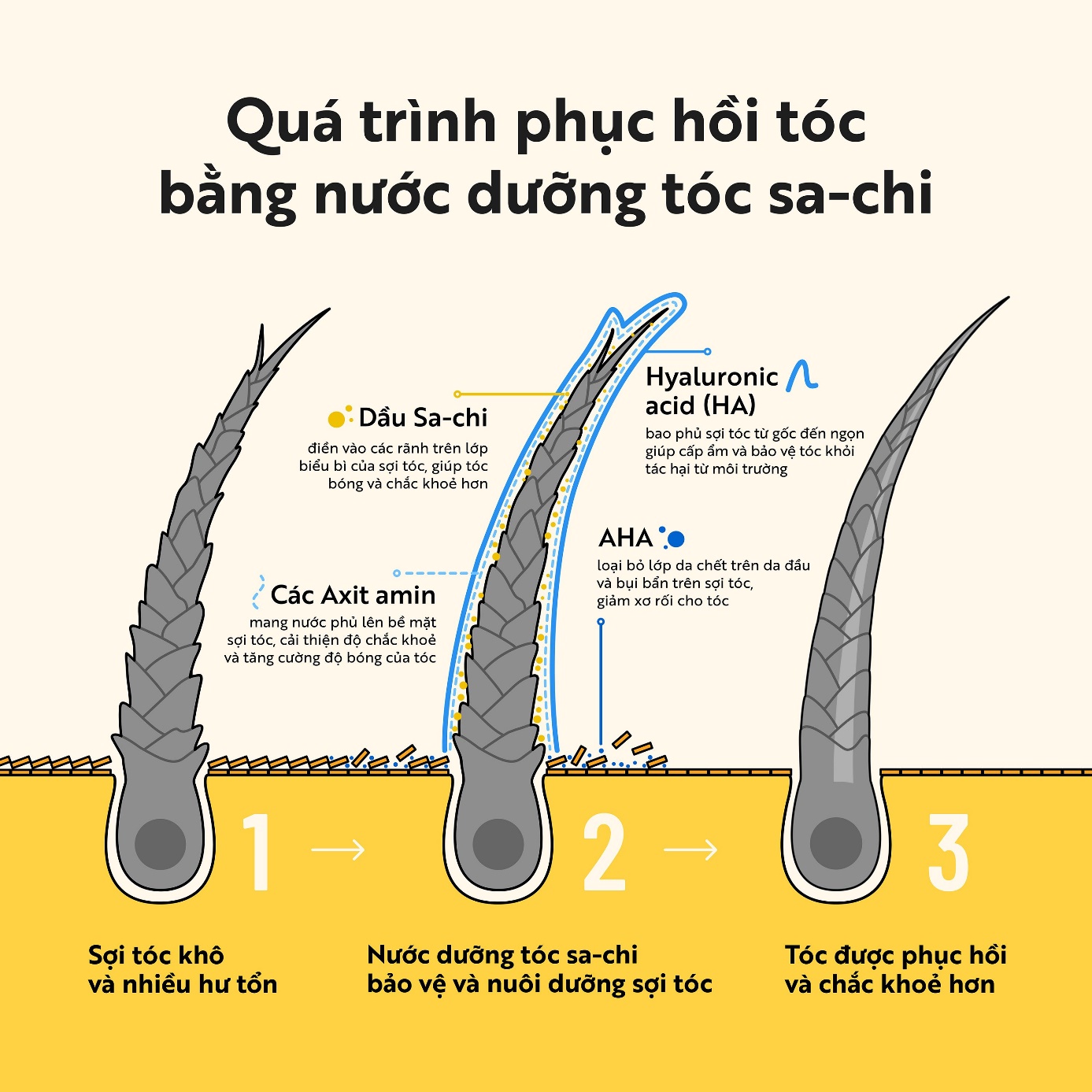 Quá trình cấp ẩm và phục hồi tóc bằng nước dưỡng tóc sa-chi
